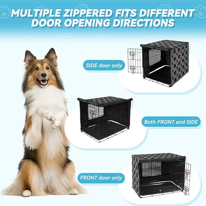 - Ventilation & Breathable: Dog crate cover two entrance doors for easy entry and exit of pets. Ventilation window behind, good visibility, can prevent dogs from getting stuffy and hot