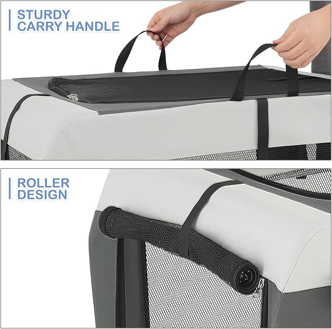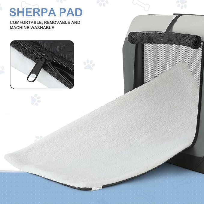 - Robust & Portable Crate Design: Engineered with a lightweight steel frame, durable Oxford cloth, and anti-bite mesh, our travel dog crate offers superior durability and safety; It features reinforced stitching and a washable sherpa mat for comfort, making it both secure and easy to transport for your pet's relaxation and protection