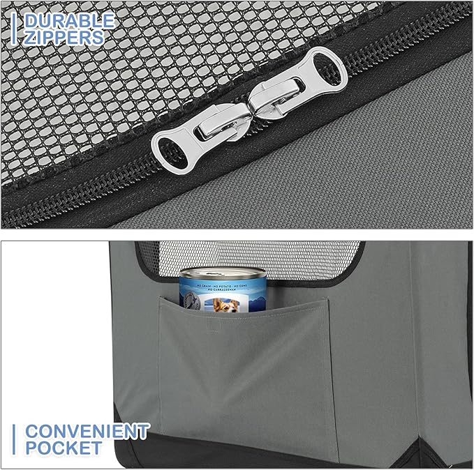 - Portable Convenience: Featuring a sturdy top handle for easy carrying and side pockets for storing treats and toys, this dog crate combines functionality with convenience, making it ideal for travel or everyday use