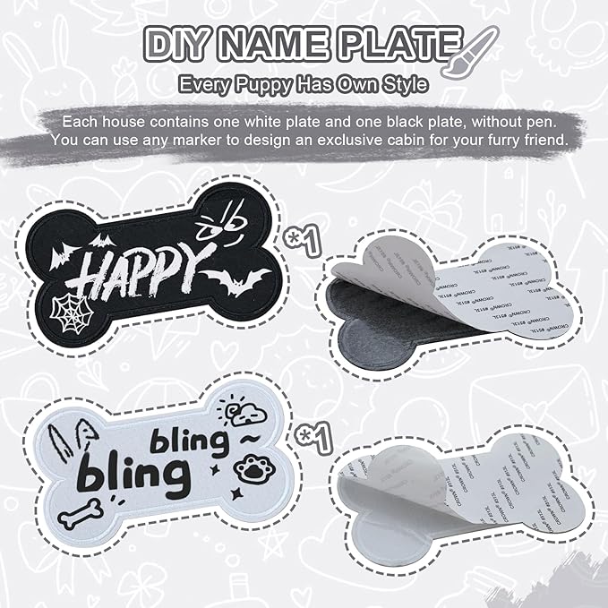 - DIY NAME PLATE - Every puppy has own style, you can design an exclusive cabin for your furry friend. Each house have one black and one white plate (no pen), any marker can draw.