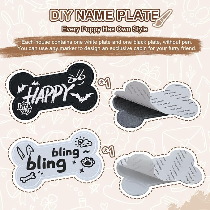 - DIY NAME PLATE - Every puppy has own style, you can design an exclusive cabin for your furry friend. Each house have one black and one white plate (no pen), any marker can draw.