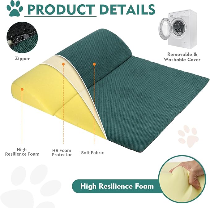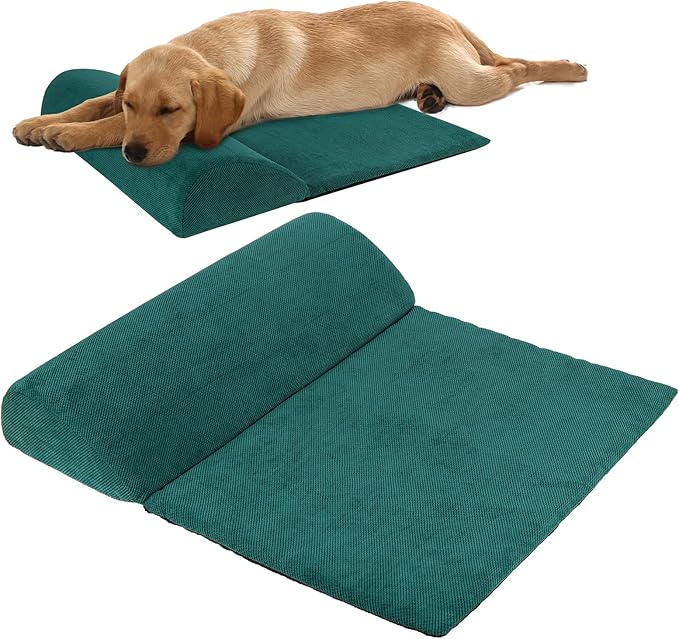 Dog Cat Bolster Pillow with High Resilience Foam, Headrest for Large Dogs, Benefit for Cervical Vertebra and Neck, Easy to Carry, Machine Washable Cover&Easy to Clean(Green)