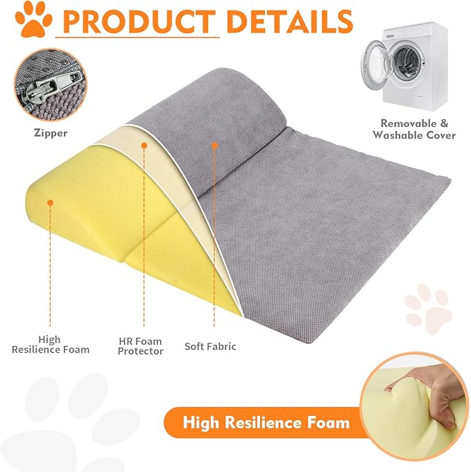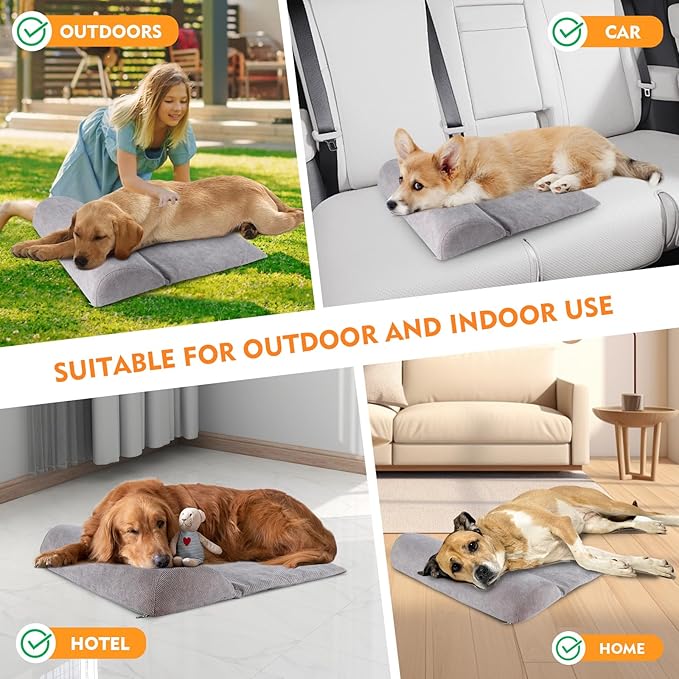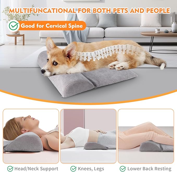 Dog Bolster Pillow with High Resilience Foam, Headrest for Large Dogs, Benefit for Cervical Vertebra and Neck, Easy to Carry, Machine Washable Cover&Easy to Clean(Grey)