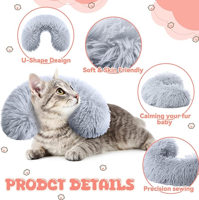 Sweetude 2 Pcs Cat Pillow for Indoor Cats and Dogs Ultra Soft Fluffy Pet Calming Toy Half Donut Cuddler Pillow U Shaped Pet Neck Pillow Calming Puppy Pillow Joint Relief Cervical Protection