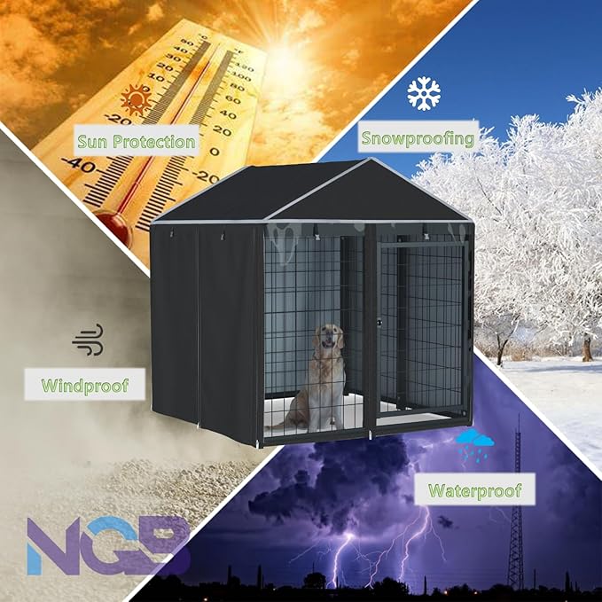 NGB Outdoor Dog Kennel Cover,600d Heavy Duty Waterproof Dog Cages Cover 4.2'Dx4.2'Wx4.5'H for Multiple Brands of Dog Kennels,Full Coverage Windproof Anti-UV,Cover Only,Black.(No Kennel)