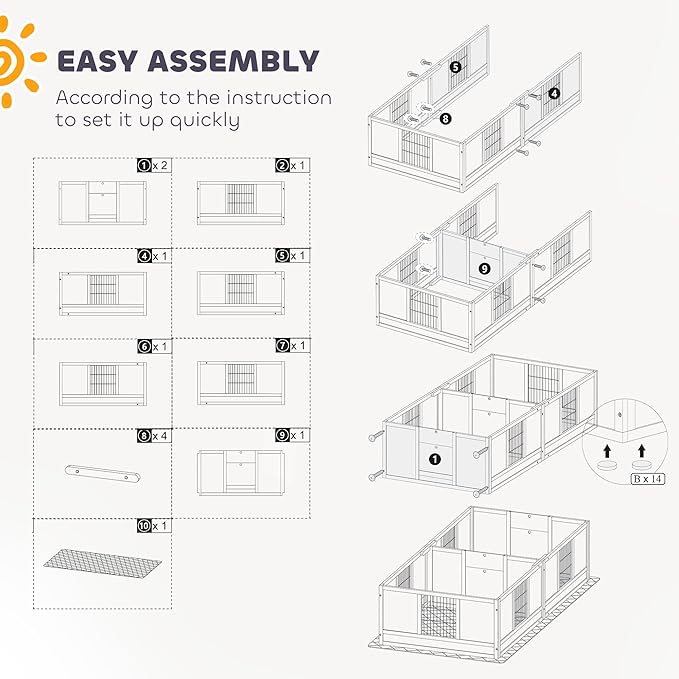 - Breathable & Stable: Constructed from pinewood and MDF with a metal mesh panel, the heavy material and non-slip foot pads make the whelping fence more stable and will not be easily moved due to the puppy's play.