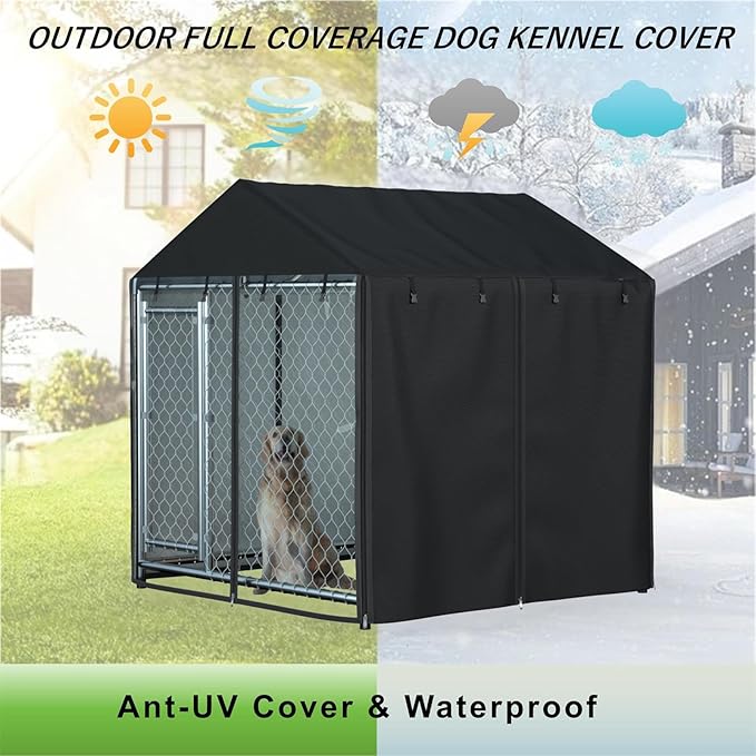 - 【Rainproof & UV Protection】 Outdoor dog crate cover is made of high quality oxford fabric and transparent PVC, which can protect against rain, dust, UV rays and light snow. Suitable for year-round use. (We recommend that you remove the cover on heavy snow days)