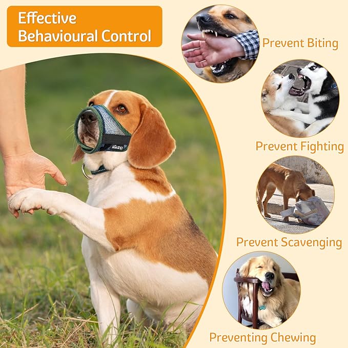 - Effective Behavior Control: The newly designed dog muzzle for barking helps prevent undesirable habits like biting, chewing, and damaging furniture. It’s a great tool for barking prevention and well-suited for veterinary visits, walks, grooming, travel, and daily activities.