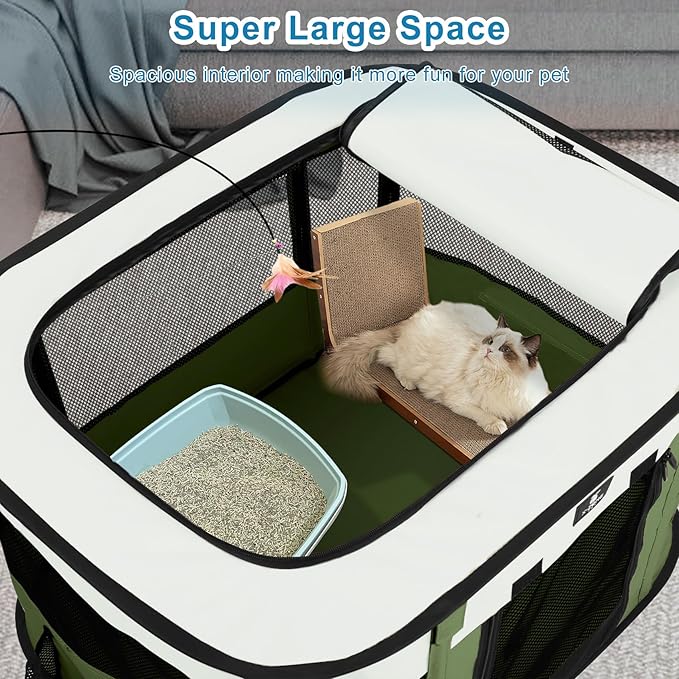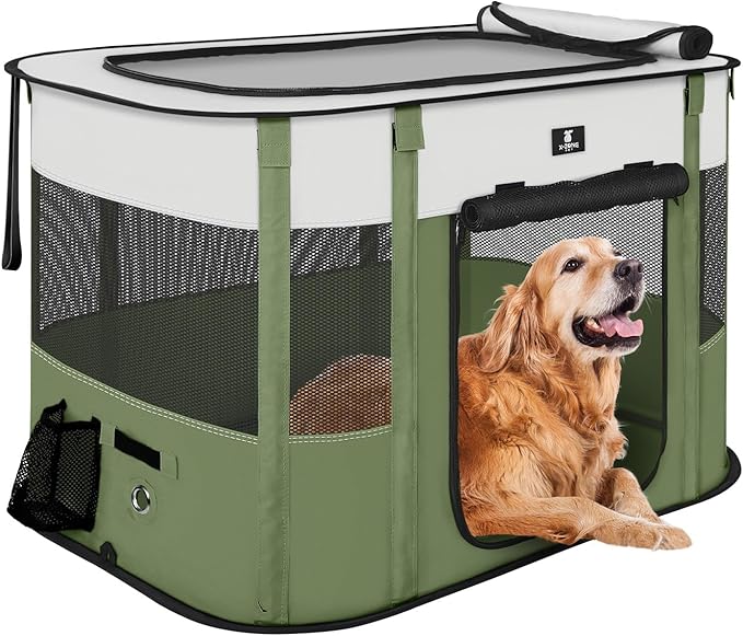 - 【Spacious & Comfort】Dog cage consists of 4 mesh side panels and a half mesh top, well ventilated; The playpen tent promotes comfort and security, providing dogs and cats a safe enclosed space for lounge and play. The pet playpen is also a ideal present as Christmas gifts for dog cat lovers