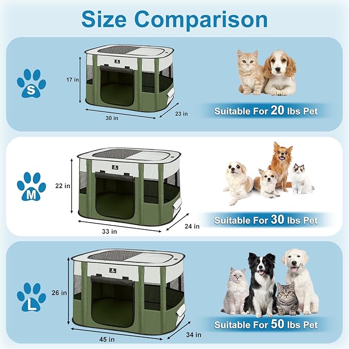 - 【Suitable for various pets】Suitable for cats, dogs, rabbits, chickens, ferrets, hamsters, pregnant pets, etc. Small -30 x 23 x 17 inches, suitable for small pets under 20 pounds; Medium -33 x 24 x 22 inches, suitable for pets up to 30 pounds; Large 45 x 34 x 26 inches, suitable for pets under 50 pounds. Please measure your pet before purchasing to choose the right size