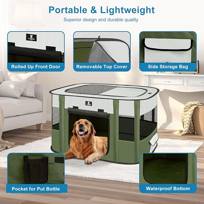 X-ZONE PET Dog Playpen, Puppy Cat Play Pen Portable Foldable Indoor/Outdoor Tent Crate Cage, Portable Pet Crate Medium Size Green 33"