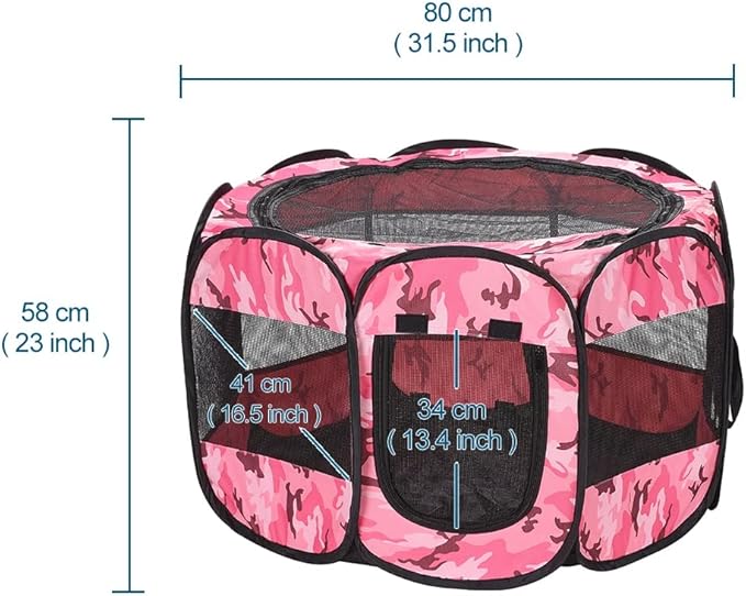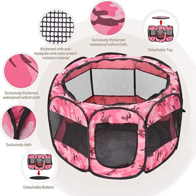 Foldable Pet Dog Playpen, Pop Up Portable Cat Playpen, Indoor/Outdoor for Kitten Puppy Play Pen, Cats Crate Tent with Carrying Bag, 600D Oxford (Camo Pink, Medium (31.5"x31.5"x23"), 8)