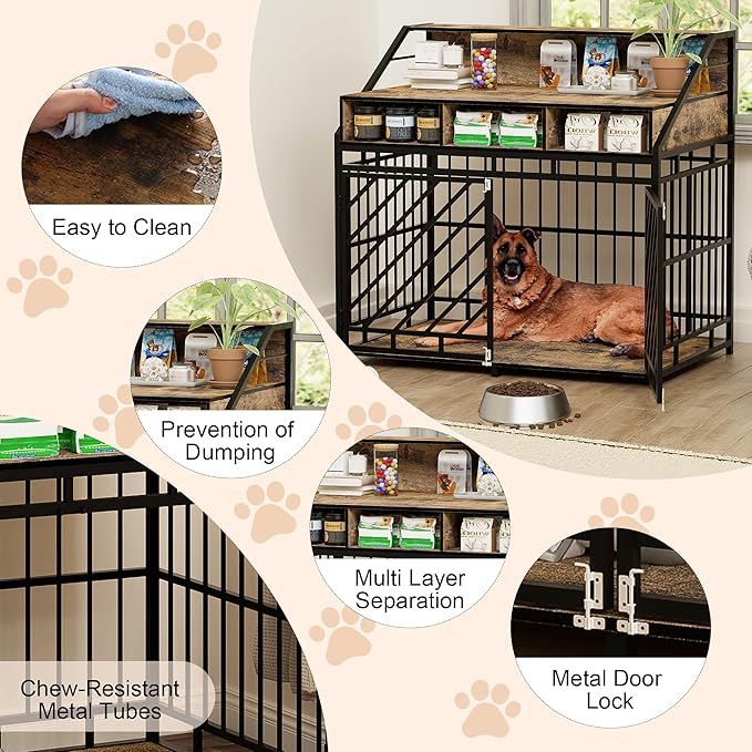 - [Stylish & Functional]: This heavy-duty dog crate doubles as elegant furniture with spacious drawers for storing dog food and a large countertop, perfect as a side or coffee table.