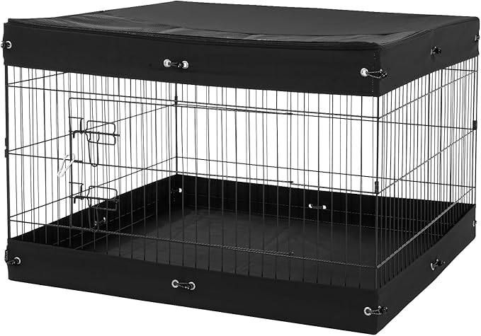 - 【Dog Playpen with 600D Heavy-Duty Oxford Armor】: Both the ground mat and top cover of our exercise pen are made of waterproof, durable, washable 600D Oxford fabric. The ground mat protects your floors, while the top cover prevents pets from jumping out. Half of the top cover features a reinforced mesh design for ventilation, light penetration, and to reduce any sense of confinement.