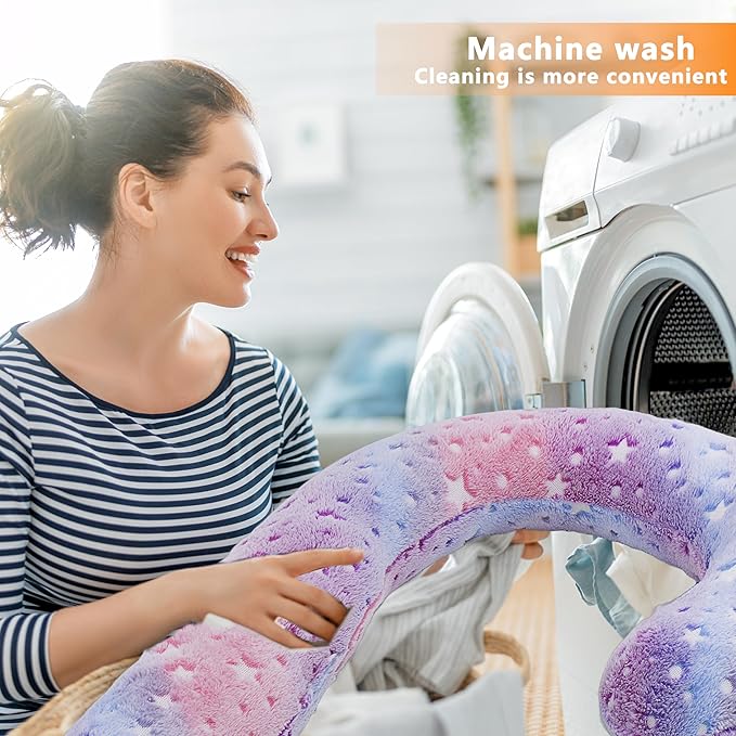Pet Calming Pillow for Dogs, Soft U-Shaped Pillow Glow in The Dark, Joint Relief, Sleep Comfortably,Suit for Small, Medium, Large Dogs, Fluffy Pet Neck Pillow (L-Pink)