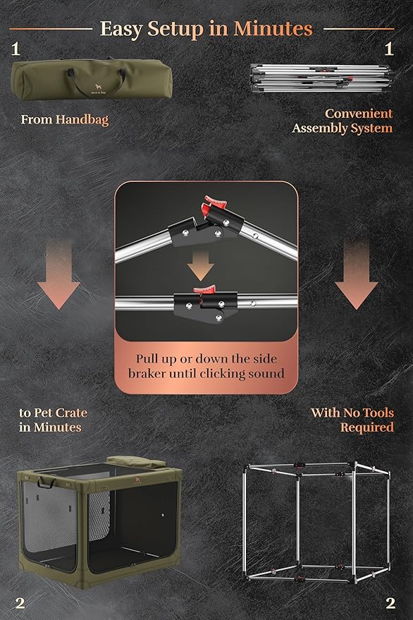 - Patent Pending: Our portable dog crate frame features our new patent-pending folding mechanism for effortlessly fold. This method saves time, effort, and storage space.