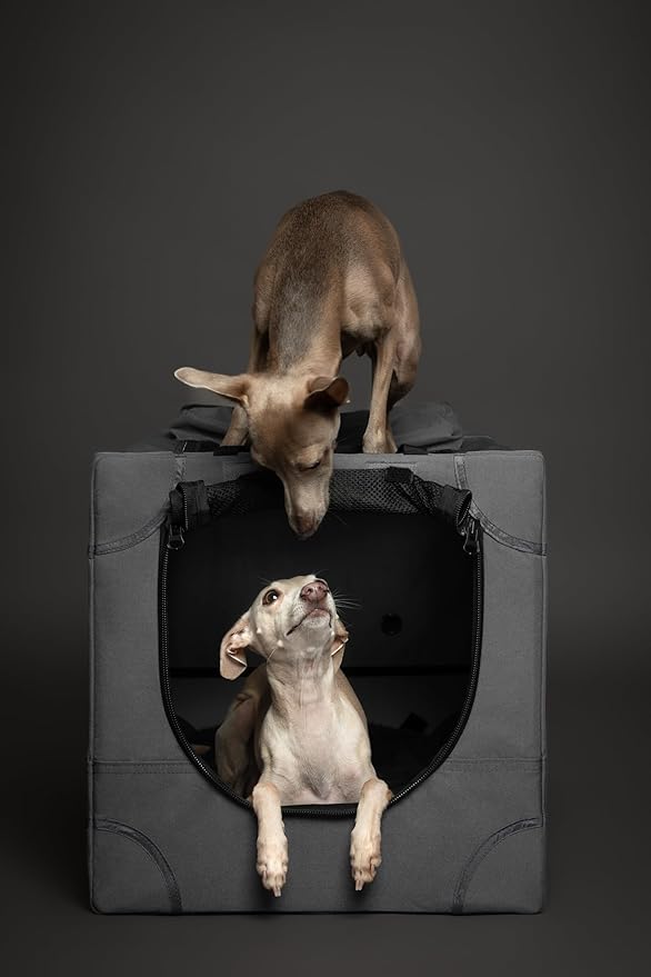 - Travel Equipment: This travel dog crate is equipped with durable handles, a dog bed for crate, 2 travel pockets, storage bag for easy folding and storage.