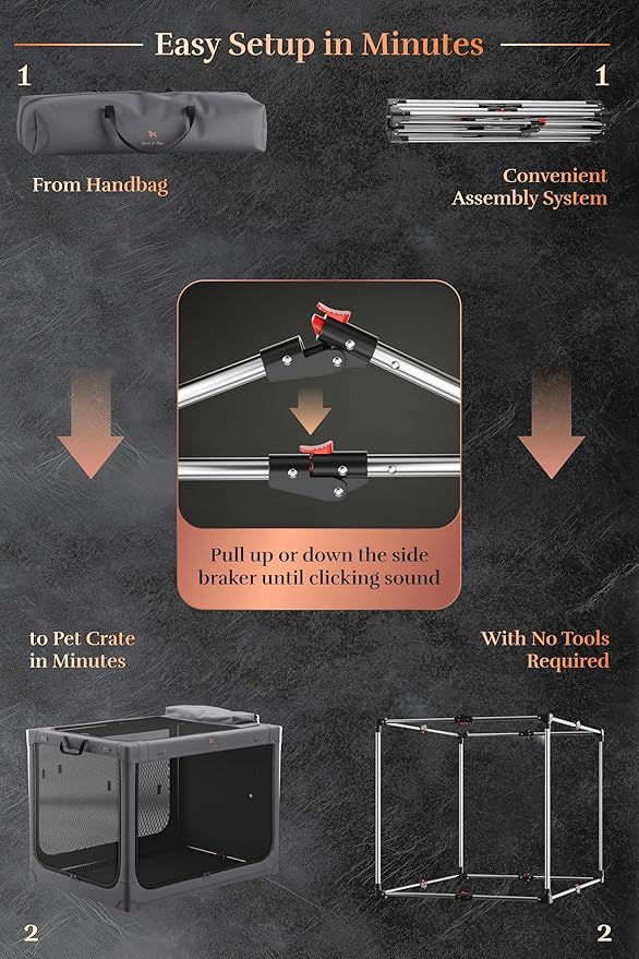- Patent Pending: Our portable dog crate frame features our new patent-pending folding mechanism for effortlessly fold. This method saves time, effort, and storage space.