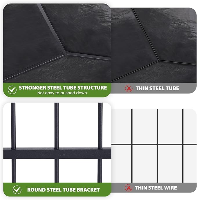 - Sturdy Construction: The Rovibek outdoor dog kennel features reinforced iron guardrails that are designed to resist bending, rust, corrosion, and fading over time. Equipped with four ground stakes, it provides added stability, ensuring your dog stays safe and protected from external dangers.