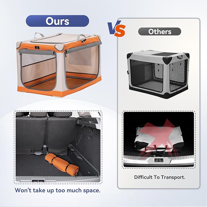 - Convenient Multi-Access Design: Our portable dog crate includes 3 doors (front, side, and top) to provide versatile access points. The front and side doors can be rolled up and secured with Velcro, making it easier to load and unload your pet.