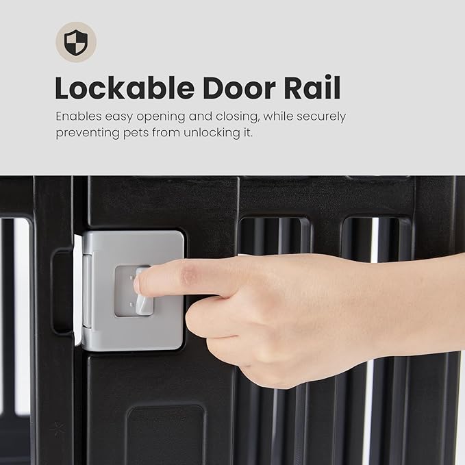 - Safety-First Features for Your Peace of Mind: The Sweetcrispy Dog Playpen is designed with a sliding lock system that’s highly resistant to pets’ tampering. The small door allows easy entry and exit, so you won’t need to lift your pet, reducing strain on your back. With bars spaced just 4cm apart, there’s no risk of your pet’s head getting stuck, offering a safer environment for curious paws.