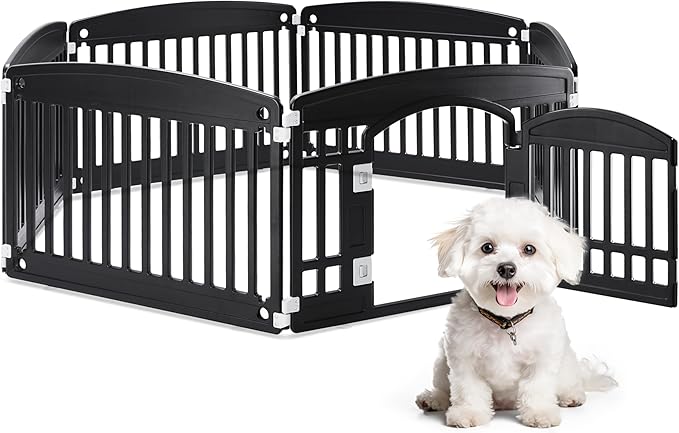 HealSmart 6 Panel 24" Plastic Dog Playpen, Folding & Portable Pet Playpen for Indoor & Outdoor Use, Safe & Secure Fence, Ideal for Small to Medium Dogs, Black