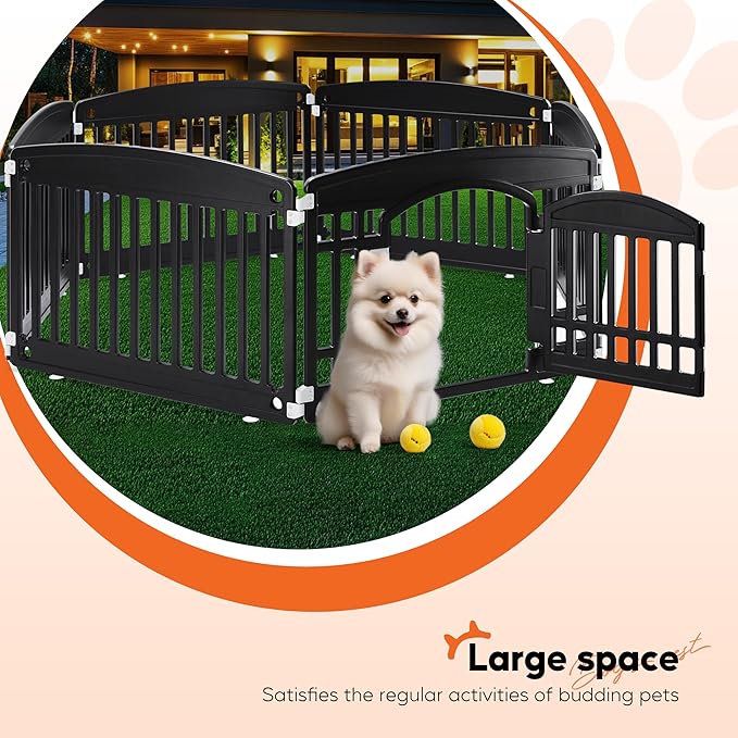 - Adjustability and Portability: Featuring a flexible design, plastic dog playpen is easy to be arranged in various shapes and sizes to suit your needs. It's foldable for convenient storage and portability, making it ideal for travel