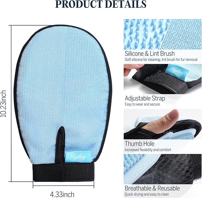 - Glove Features – The silicone side cleans and massages, while the velour side removes fur. Adjustable, breathable, reusable, and quick-drying for a comfortable, secure fit