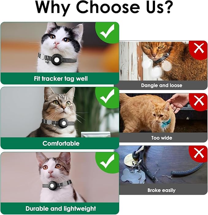 - ➤【Perfect-fit Silicone Holder】Cat tracker is equipped with a waterproof silicone bracket specifically designed for tracker. Soft silicone holder made from comfortable,odor free,hypoallergenic material. Ensuring a perfect fit for your cat's neck and better for their skin, also protecting air mini tag from accidental falls and scrathch.