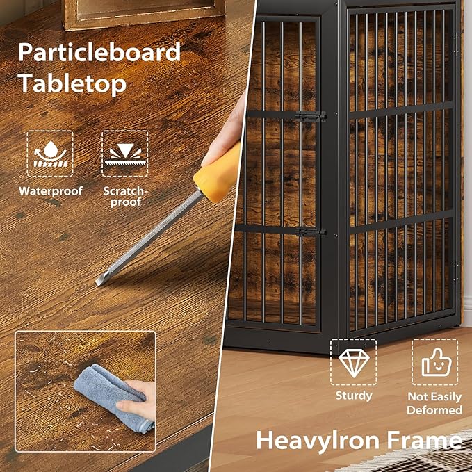 - [ Dog Crate Furniture ] This xl dog crate brings convenience and practicality together in one thoughtful design. Designed with a particleboard top, it provides extra storage space for snacks, toys, bedding, and other pet essentials, helping you keep everything organized and easily accessible.