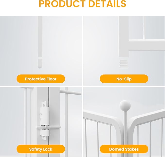 - 【Safety Design】: The upgraded design of the ground stakes with rounded tops provides protection for your pet's paws, ensuring more robust stability even when the pet is close. You can truly trust that your pet can move around safely within the enclosure