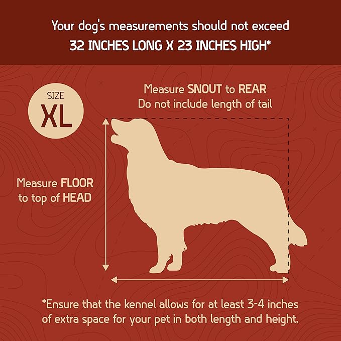 - Your dog’s measurements should be under 32” L x 24” H for x- large kennel