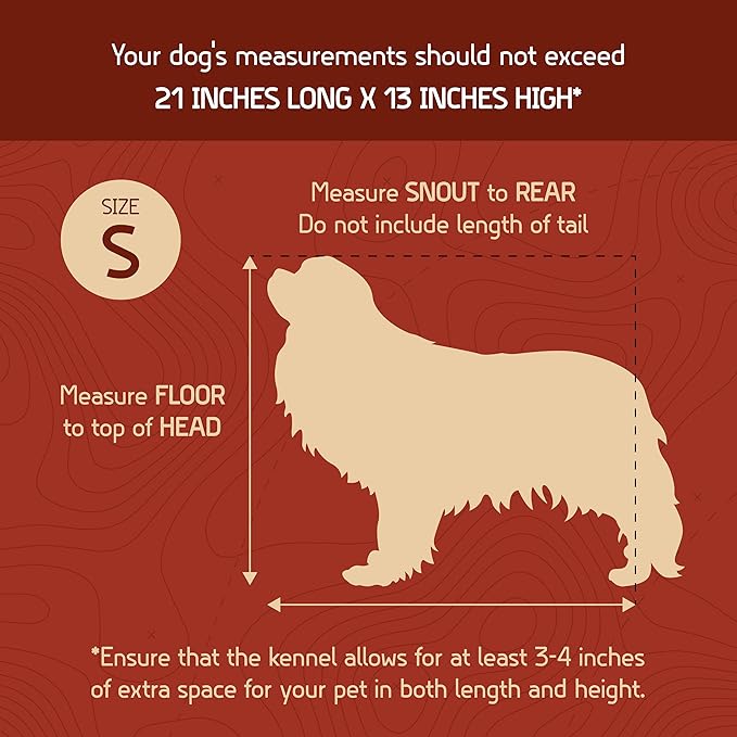 - Your dog's measurements should be under 21" L x 13" H for small kennel