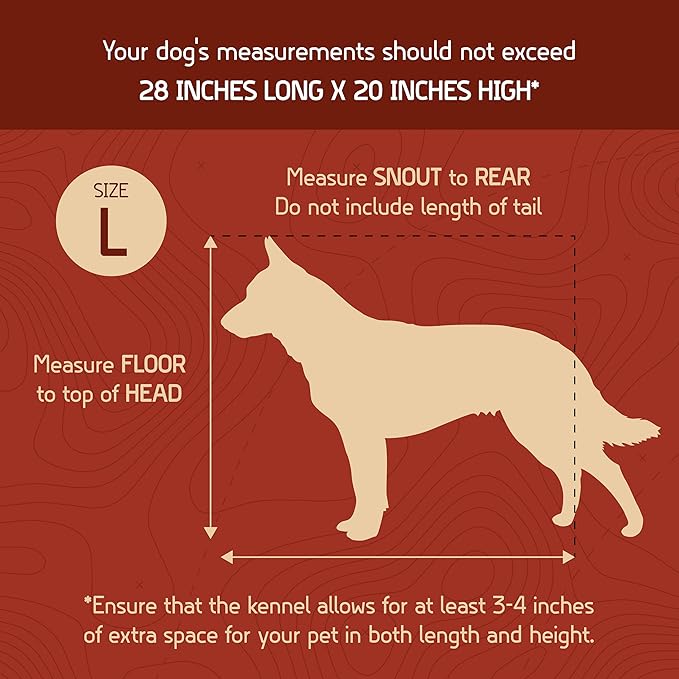 - Your dog’s measurements should be under 29” L x 20” H for large kennel