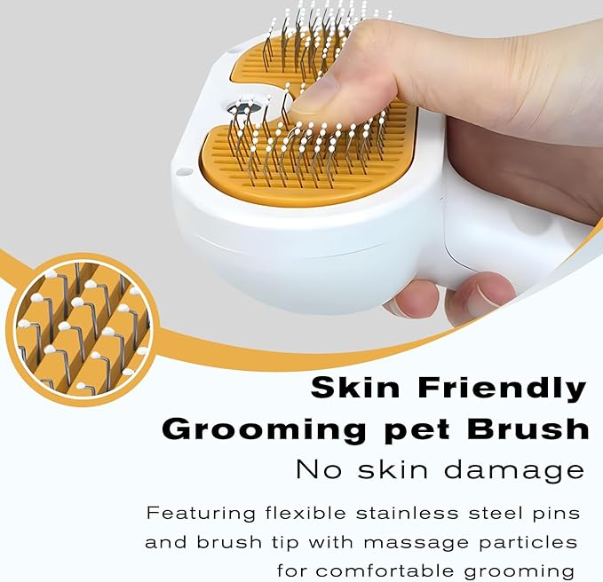 - 1. Multi-Function Pet Grooming Tool This pet steam brush combines de-shedding, steam spray, self-cleaning, and massage functions into one. It effectively removes dead skin and loose hair from your pet’s coat, reducing tangles and matting, and keeps their fur smooth and soft. Suitable for both long-haired and short-haired cats, it meets all your daily grooming needs, helping to reduce the frequency of baths while maintaining your pet’s skin and coat health.