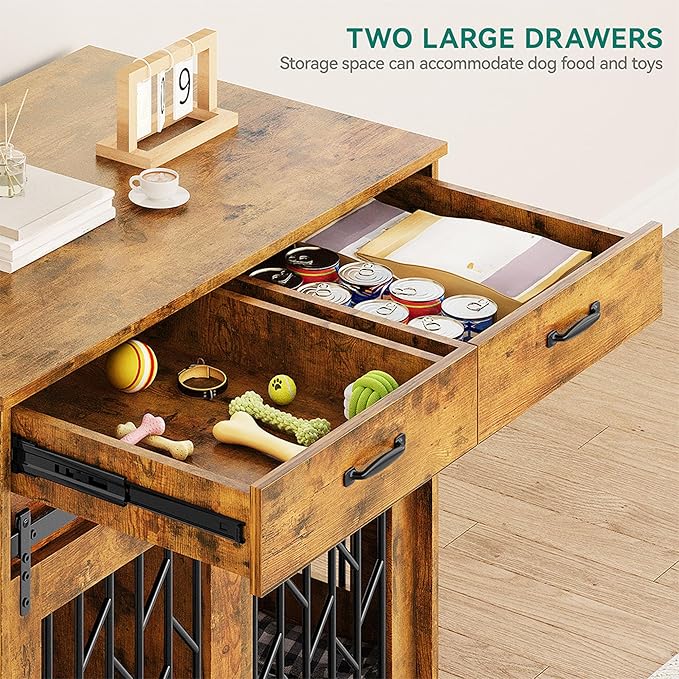 - Ample Storage Space: Our furniture dog crate offers convenient storage options with two drawers to store dog treats and a generous 39.3’’x25.1’’ top panel that’s perfect for displaying picture frames, vases, magazines, and more; Keep everything you need within reach and organize your space to be clutter-free