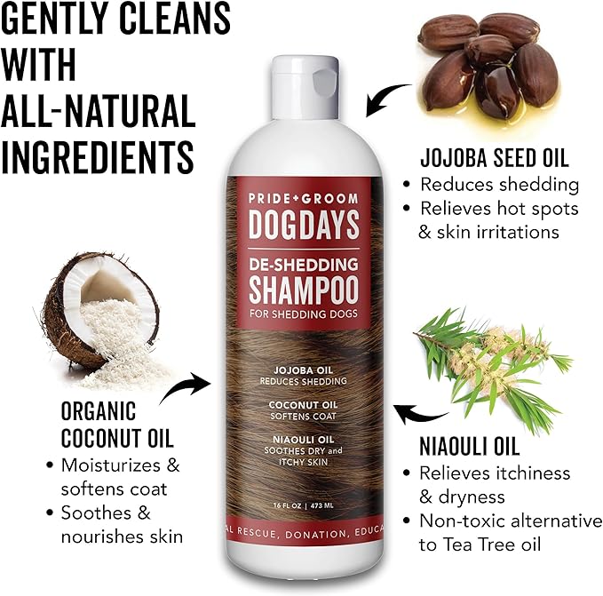 Pride and Groom DogDays Deshedding Dog Shampoo | Fast-Acting Coat Softener & Shedding Control | All-Natural Dog Wash with Essential Oils | Reduces Excess Fur & Dander for Curly & Wavy Coats – 16 oz