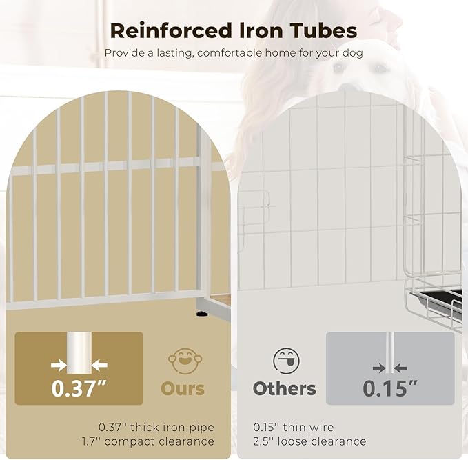 - 【Sturdy and Chew-Resistant】This dog crate furniture for 2 dogs is made of premium particle board and iron pipe, which is stronger and more chewy; It will accompany your dog throughout the growing stages