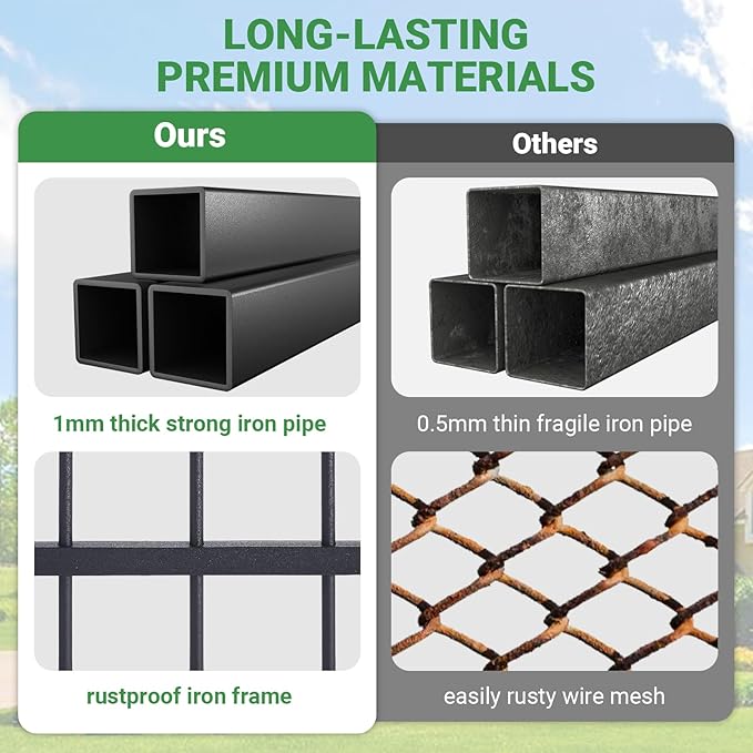 - Reinforced Roof for Stability: Featuring a reinforced top frame, this kennel prevents wobbling and ensures stability, even in windy conditions. The dog run with roof design provides extra protection, keeping your pet safe and sheltered from the sun or rain.