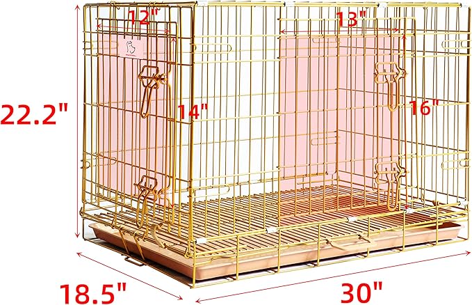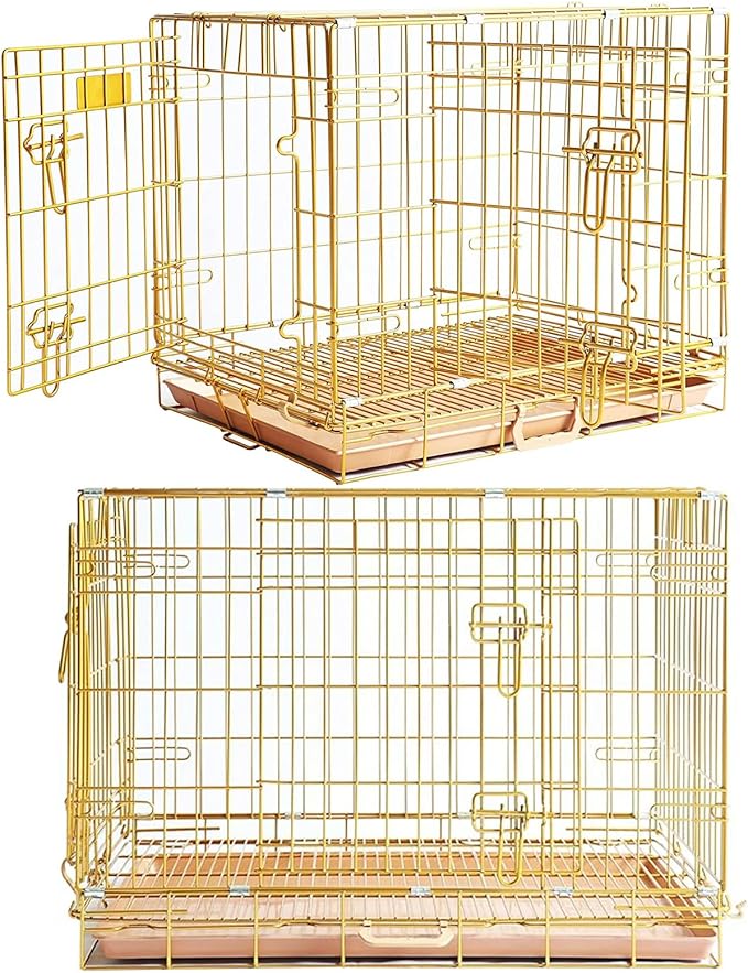 - Durable Gold Dog Cage: Made of thickened metal wire with a golden nano coating, this puppy kennel extends its life and provides resistance against rust, fading, peeling, and scratches. Not easy to bend or bite. The comfortable, den-like space provides enough ventilation and visibility. Don't let your dog feel cooped up. Reduces cage anxiety and chewing in your dog