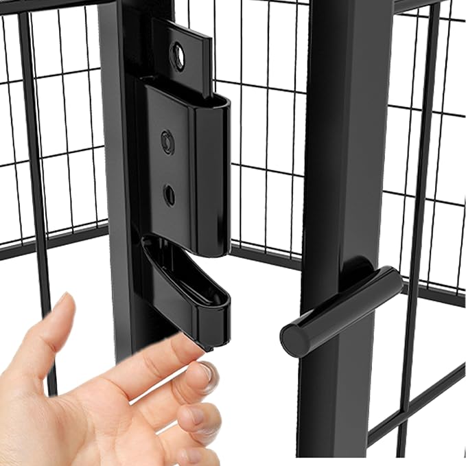 - 【Automatic Locking Mechanism】Featuring an automatic gravity locking mechanism, this playpen allows for smooth gate operation while enhancing security. Pets won't be able to easily unlock the gate, providing you with peace of mind.
